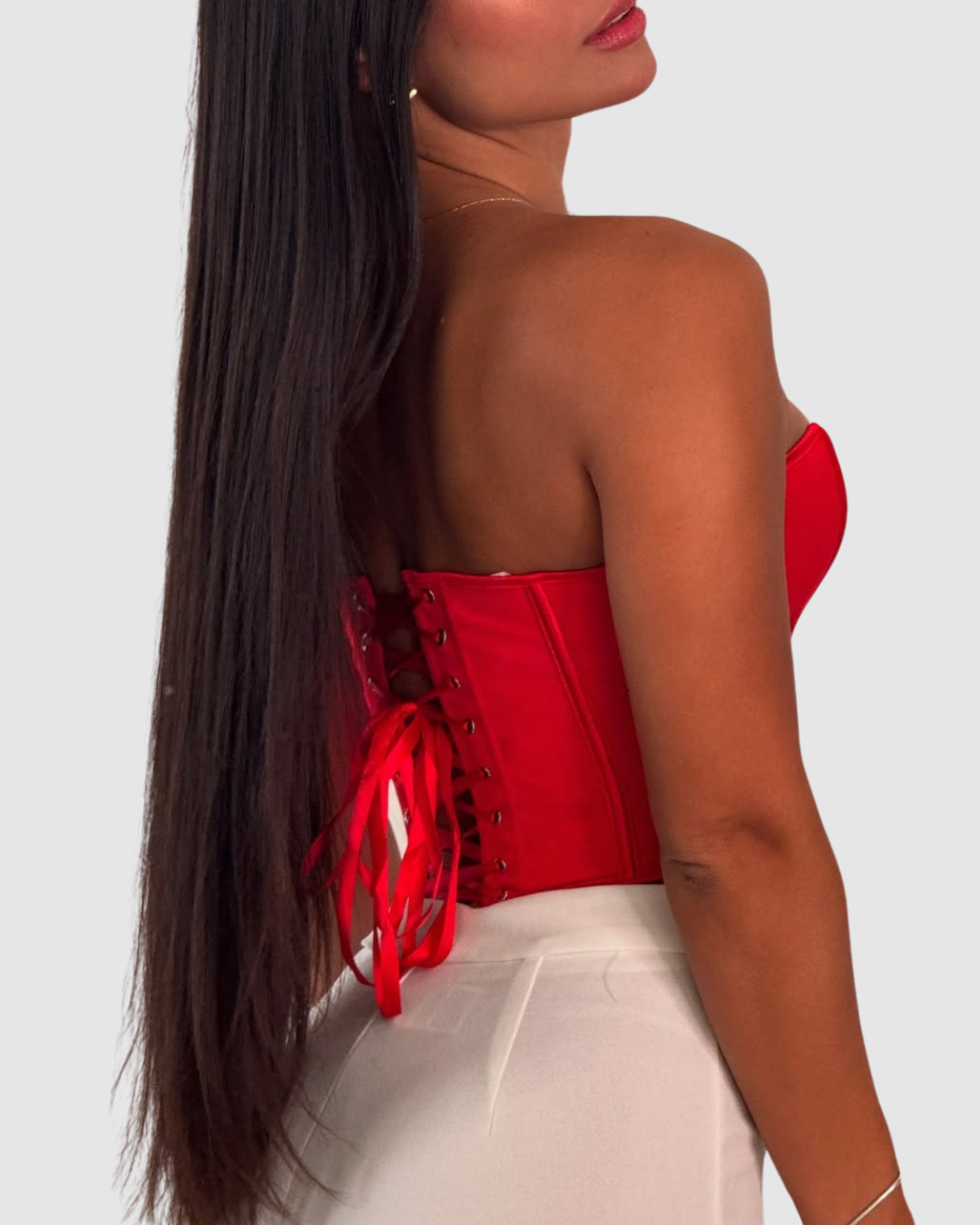 Corset con cintas de amarrar en la parte posterior; perfecto para usar como prenda exterior. La horma perfecta.