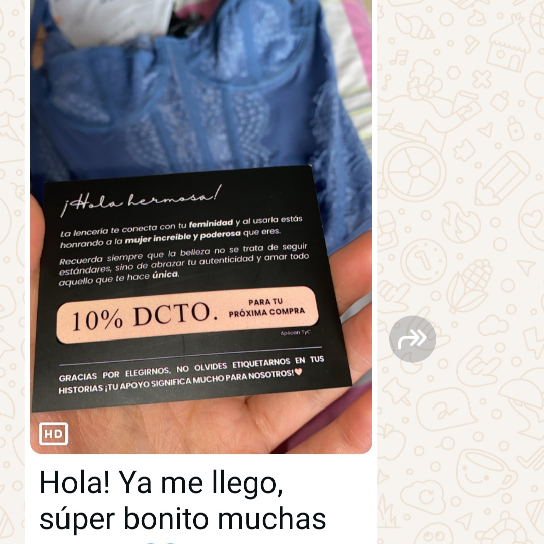 "En serio muchas gracias por la prenda, está hermoso y gracias por el detalle"
